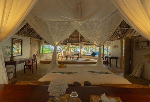 Manda Bay is a small privately owned boutique lodge located on the northern tip of Manda Island in the Lamu archipelago on Kenya’s coast. An unspoilt, secluded location where you can switch off from the rest of the world, take your shoes off and enjoy simplistic beauty in palm thatched cottages and open living spaces. Manda Bay combines the ultimate bush and beach experience with miles of soft white sand on a private beach and Coconut palms mixed with Doum palms, Acacia Tortilis and a variety of wildlife.
